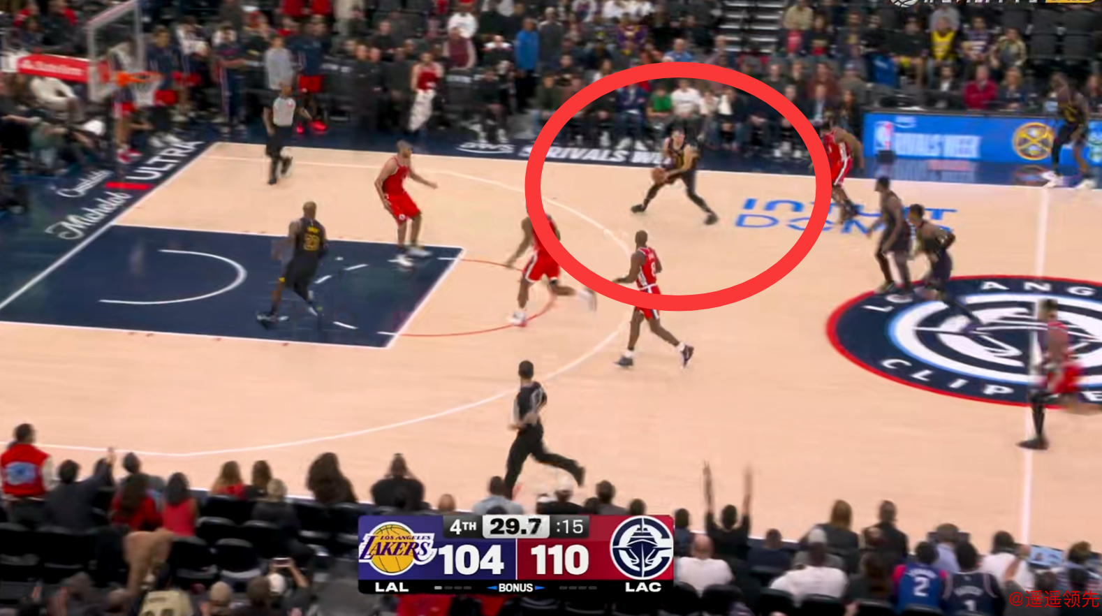 还原一下当时的情况,谁能理解东契奇到底在想些什么?湖人这场虽然说落后快船快30分,但是一直没有认输,比赛进行到还剩下一分半钟的时候,詹姆斯打成了一个2+1,分差只有3分,此时可以看到快船有点慌,湖人队有机会逆转了。
